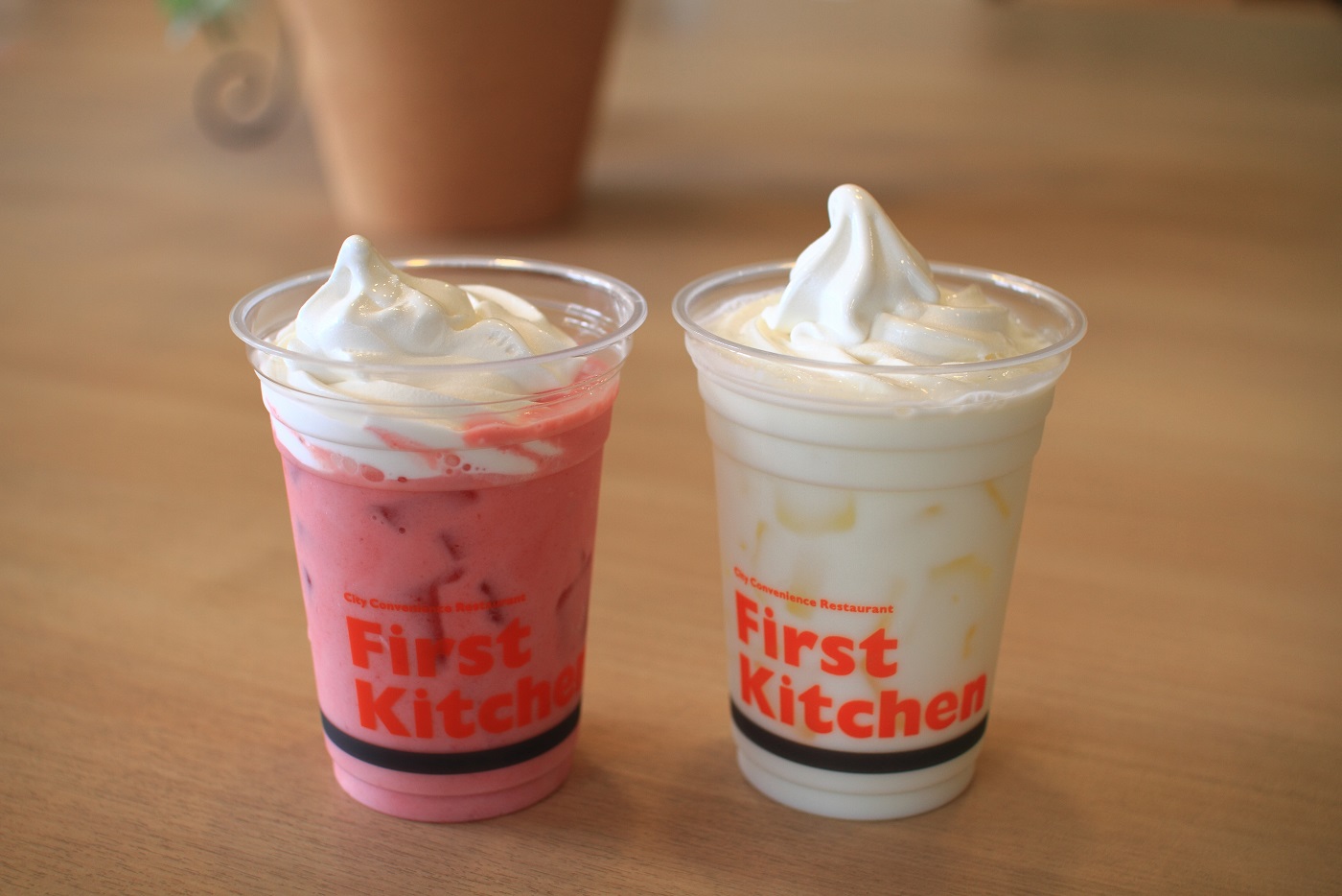 そんな私達、イカスミポテトではなく何故かヨーグルトフロートとイチゴミルクフロートを飲んでいる^^