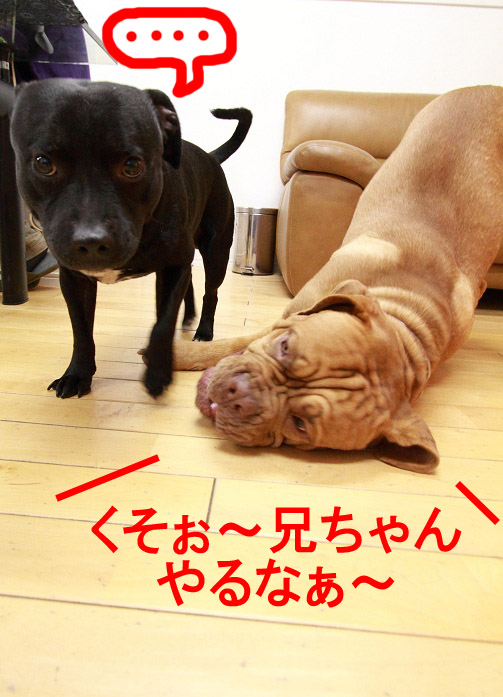 そして帰って、いちくん&マ~さんの飛びつき尻尾ふりの大歓迎をうけると思いきや