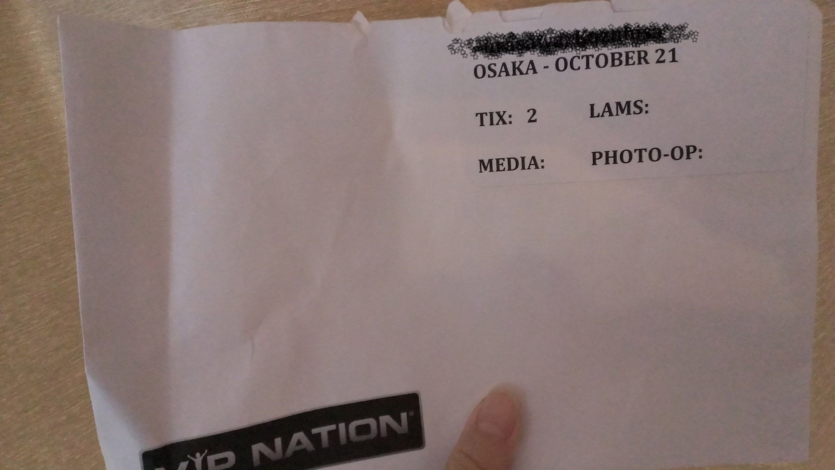さて、頂いたチケットは、きちんと封筒に入った状態で渡されました。