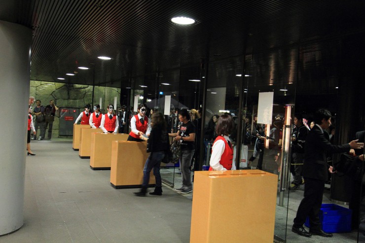 大阪城ホールのエントランス横の招待席受付に、この日のショーのチケットを取りに来ました。