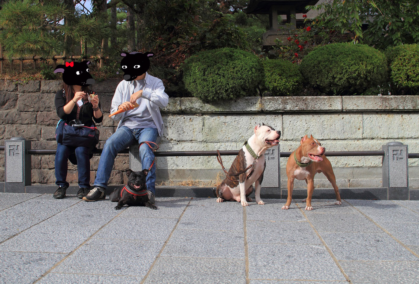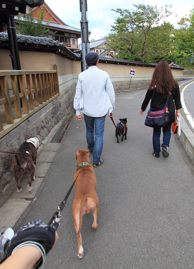 チャーンス!とばかりTAKO&TAMAは二人を連れて散歩に出掛けました。