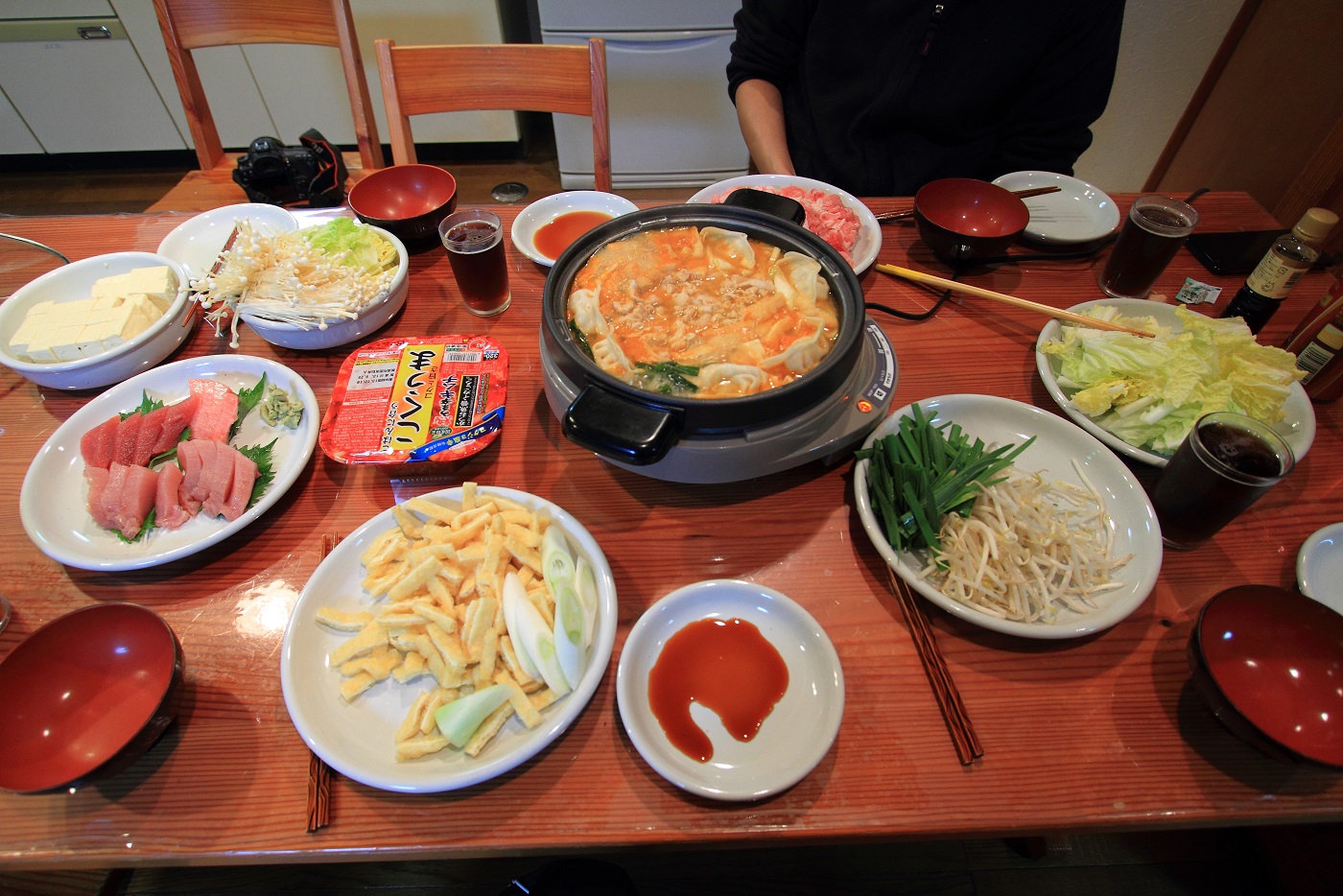 この日の晩御飯、キムチ鍋を囲み、世にも奇妙な物語を見ながら「いただきま~す♪」