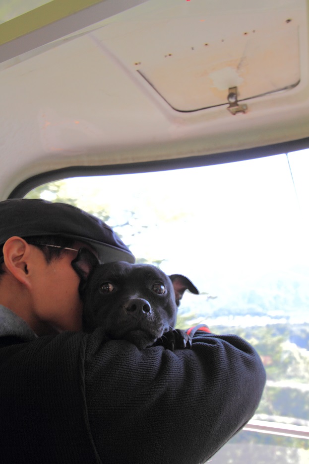 乗っている間も、いちくんは怖いので足元からチョロっとだけ顔を出して外を見てましたけど、