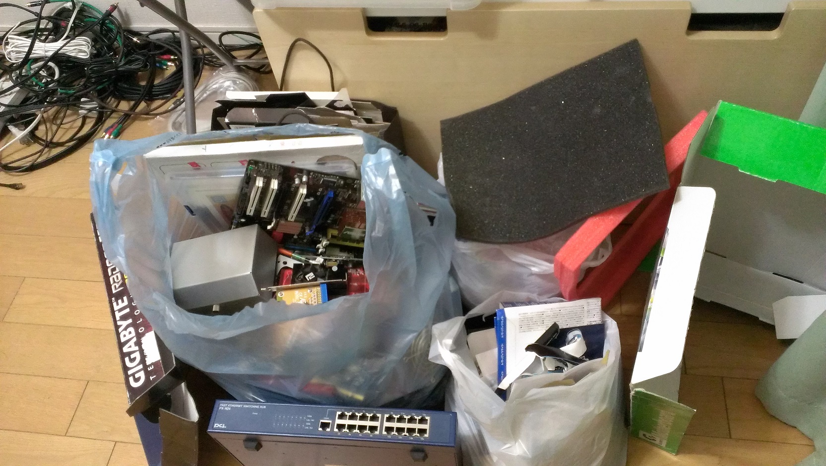 年末はPC部屋のあまりの汚さに、「片付けないなら全部捨てるぞ~!」と、脅して片付けさせました。