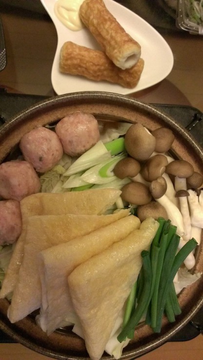 なので、帰りに材料を買って晩御飯に鍋焼きうどんと竹輪をたべました♪