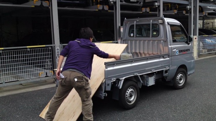 ホームセンターの軽トラを借りて運びます。