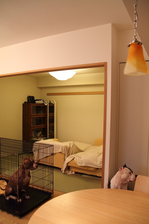うるさいマ~さんから逃れるべく、いちくんが襖を開ける事を覚え、それ以来ワンコ達に開放したところ、
