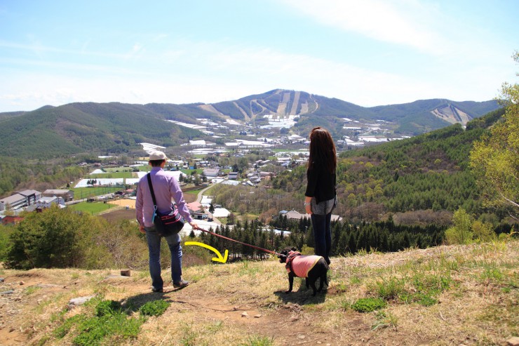 と、下り急斜面コース手前で立ち止まり景色を眺める私達。