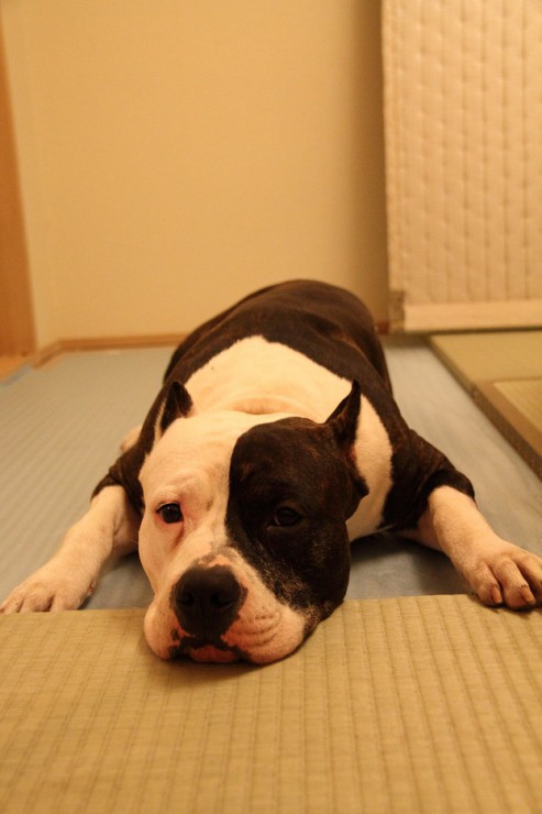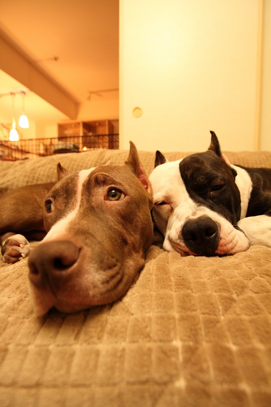 私、TAMA・相方のTAKO・アメリカンピットプルテリアの世界一(兄・写真右)&卍丸(弟・写真左)
